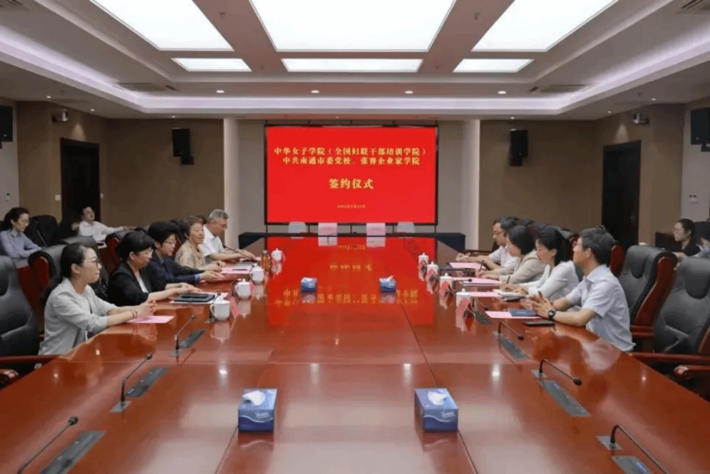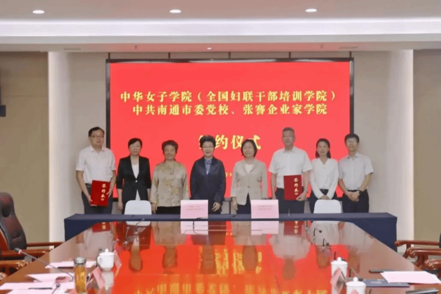 5月21日,我校與中共南通市委黨校、張謇企業家學院簽訂培訓領域合作框架協議。中華女子學院(全國婦聯干部培訓學院)院長劉利群,南通市委常委、統戰部部長王小紅,南通市政協副主席、張謇企業家學院院長單曉鳴,南通市委黨校常務副校長張洪暉,張謇企業家學院副院長趙德偉等出席簽約儀式,并圍繞后續合作事宜進行座談。