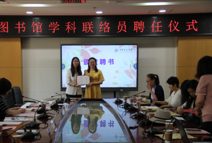 6月13日上午,圖書館首屆學(xué)科聯(lián)絡(luò)員聘任儀式在圖書館608會議室舉行,中華女子學(xué)院副院長李瑩出席并現(xiàn)場為新聘任的學(xué)科聯(lián)絡(luò)員們頒發(fā)聘書,圖書館副館長吳倩主持儀式。在第十八屆圖工委會委員們的大力支持下,共有來自10個系部的22名專業(yè)教師成為圖書館學(xué)科聯(lián)絡(luò)館員。