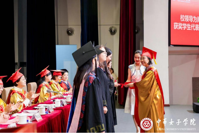 典禮由中華女子學院黨委書記劉亞玫主持,院長劉利群,黨委副書記趙浩,副院長薛小麗、周應江、韓燕,黨委副書記兼紀委書記邢慧麗,黨委常委、黨委組織部(統戰部)部長張霞,黨委常委、黨委宣傳部(教師工作部)部長葉水平,學位評定委員會委員,相關職能部門負責人,各二級學院院長、黨總支書記、副書記、研究生導師、任課教師、輔導員和班主任,以及分會場的420多名家長齊聚學校,共同見證這一重要時刻。典禮采取主會場、分會場、線上圖片同步直播的方式進行,在全體齊唱國歌聲中拉開序幕。