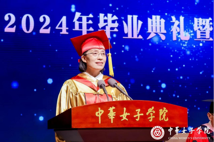 黨委副書記趙浩代表全體校領導在典禮上致辭,寄語全體畢業生牢記習近平總書記的殷殷囑托,勇擔時代使命,做矢志報國的踐行者;牢記服務婦女、服務人民的立校初心,傳承紅色基因,做自強不息的奮斗者;牢固樹立終身學習的教育理念,擁抱科技創新,做探索新知的弄潮兒;牢固樹立修身正己的道德自覺,堅持自律自省,做文明風尚的倡導者。祝福同學們心有星辰,繁花似錦;奔赴山海,成就未來!