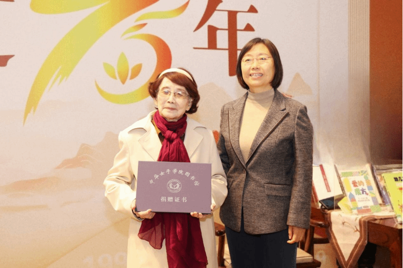 校友葛蘭深情回顧了在母校的學(xué)習(xí)和生活經(jīng)歷,對(duì)學(xué)校的巨大變化和快速發(fā)展感到自豪。她希望學(xué)者文庫(kù)成為師生學(xué)術(shù)交流的重要平臺(tái),激發(fā)更多學(xué)術(shù)創(chuàng)新,為學(xué)校的學(xué)術(shù)事業(yè)貢獻(xiàn)力量。為支持本次學(xué)者文庫(kù)建設(shè),葛蘭老師捐贈(zèng)了大量珍貴的照片、筆記、剪報(bào)等資料,極大豐富了本次展覽內(nèi)容。劉利群院長(zhǎng)現(xiàn)場(chǎng)為葛蘭老師頒發(fā)了捐贈(zèng)證書(shū)。