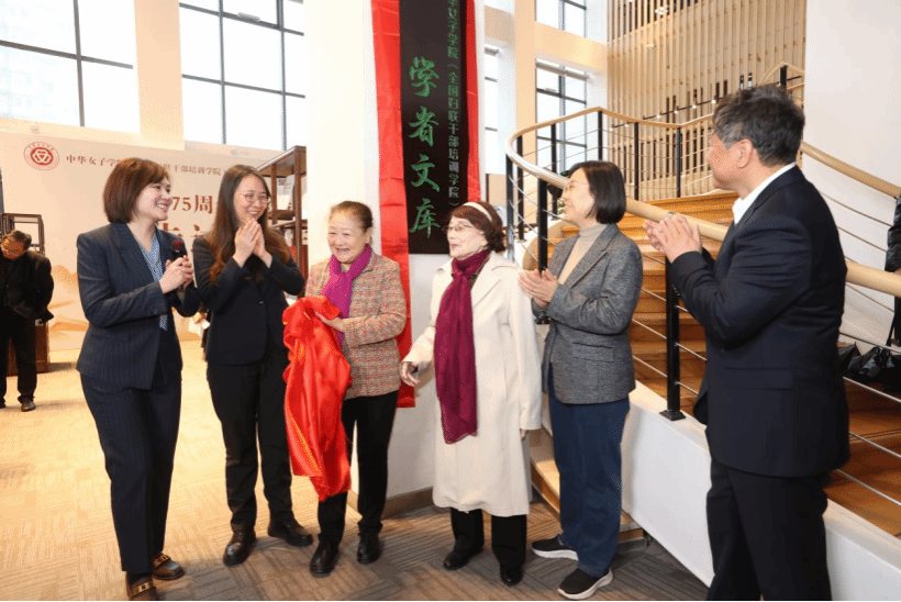 11月13日,為慶祝建校75周年,中華女子學(xué)院圖書(shū)館在五層中廳隆重舉行學(xué)術(shù)成果展暨學(xué)者文庫(kù)揭幕儀式。院長(zhǎng)劉利群、副院長(zhǎng)李瑩,首屆校友、新中國(guó)第一代播音員葛蘭,退休教授、女性學(xué)研究領(lǐng)域資深專(zhuān)家孫曉梅,以及各職能部門(mén)和二級(jí)學(xué)院的領(lǐng)導(dǎo)、教師,研讀學(xué)社成員和青馬工程學(xué)員等70余人出席活動(dòng)。儀式由圖書(shū)館副館長(zhǎng)吳倩主持。