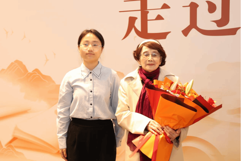 研讀學(xué)社成員、學(xué)者文庫(kù)的布展志愿者管理學(xué)院的張睿同學(xué)現(xiàn)場(chǎng)向葛蘭老師獻(xiàn)花并表達(dá)了深深的敬意,并在現(xiàn)場(chǎng)分享了布展感受,她表示,在學(xué)者文庫(kù)布展過(guò)程中找到了女院人的歸屬感與自豪感,從而汲取前行的力量。