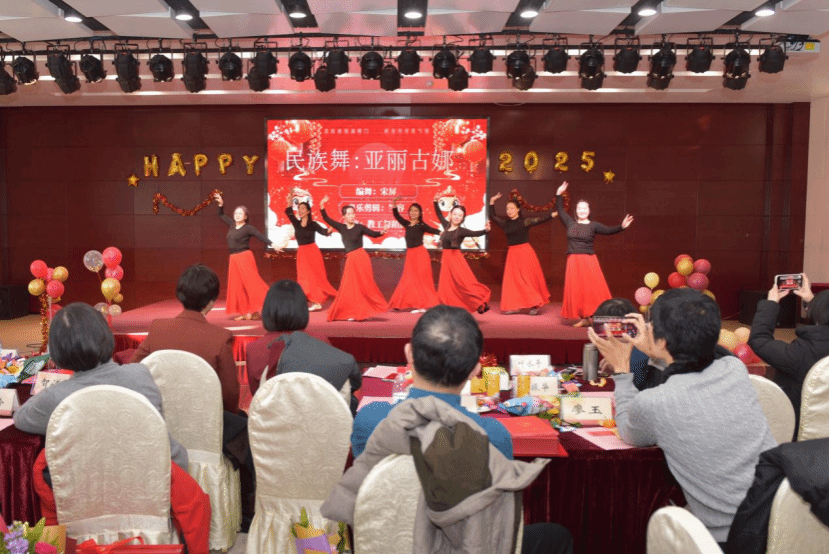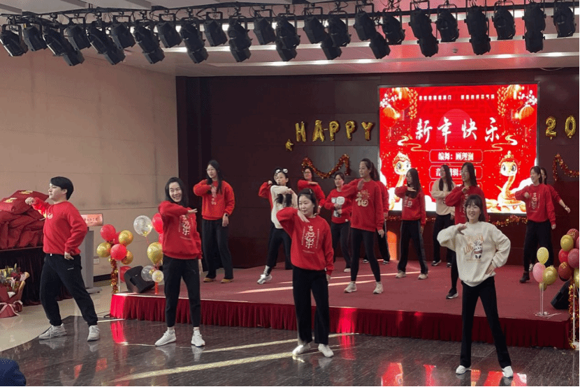 聯歡會現場氣氛熱烈如火。在熟悉歡快的《新年快樂》旋律中,教工文體協會快樂減脂團成員活力登場,她們臉上洋溢著喜悅,步伐靈動矯健,和著音樂節奏,奏響新年序章。