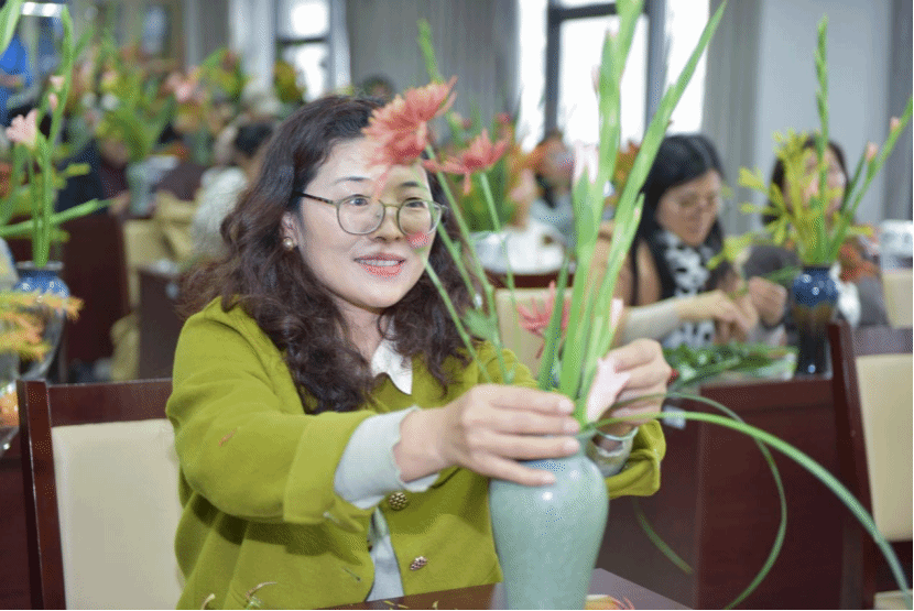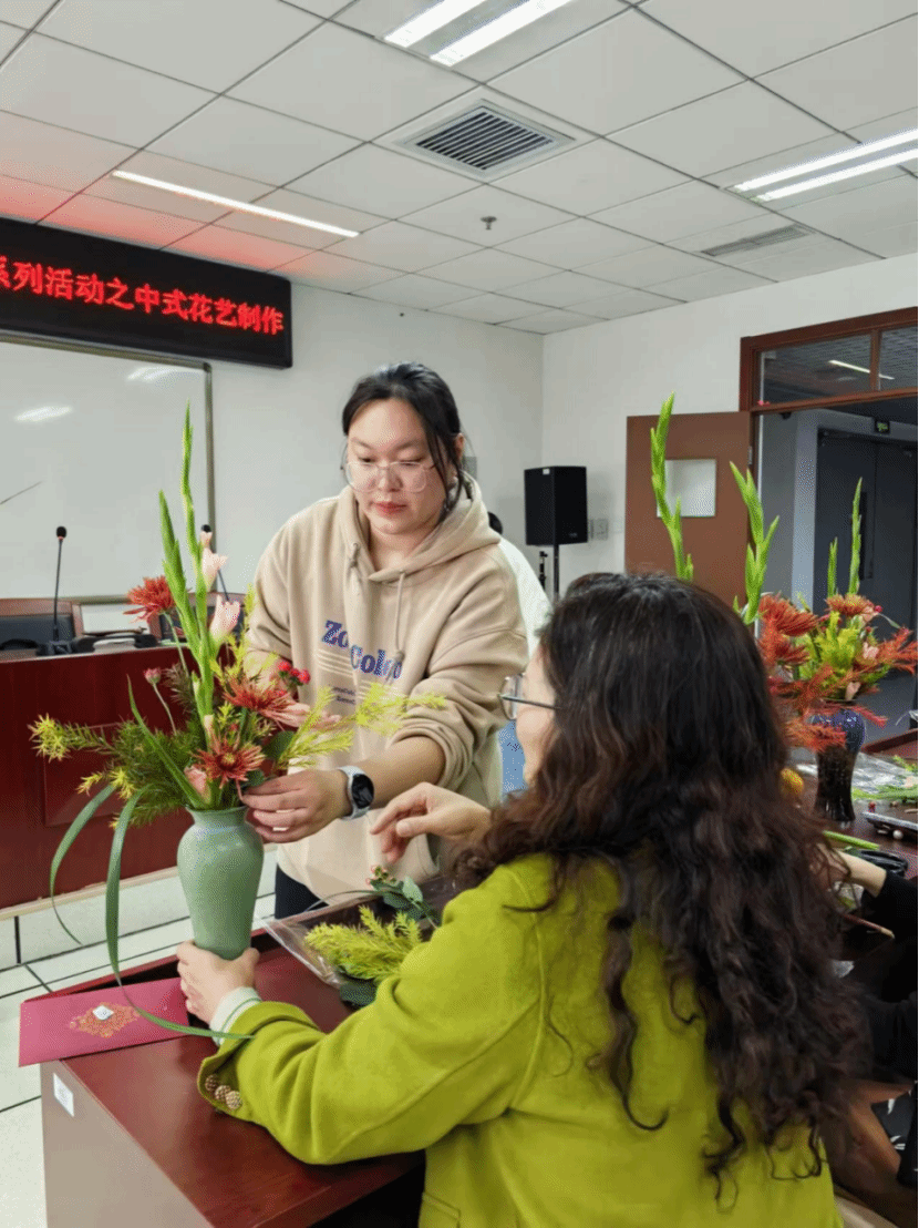 11月13至15日,教職工興趣匯系列活動(dòng)——非遺纏花、蛋糕DIY、中式插花持續(xù)舉辦。一根金屬絲一張紙片搭建出骨架,再用蠶絲線一圈一圈地纏繞上去,做出一片片有自然光澤的“花瓣”,再逐片組合成花,各種姿態(tài)極盡綻放。這種用絲線纏繞而成的花飾,被稱為纏花,是一種流傳已久的傳統(tǒng)民間技藝制品。涂抹奶油、裱花裝飾、擺放水果……在專業(yè)老師的示范指導(dǎo)下,大家很快掌握了制作的步驟和訣竅,紛紛化身“西點(diǎn)大師”,一展身手,體驗(yàn)著自己動(dòng)手DIY的樂趣。中式插花的精髓是追求花材的自然形態(tài)之美,賦予植物以獨(dú)特的精神和內(nèi)涵。活動(dòng)不僅展現(xiàn)了教職工多才多藝的一面,更是在忙碌的教學(xué)之余,搭建起一座心靈交流與創(chuàng)意碰撞的橋梁。老師們有的低頭獨(dú)立創(chuàng)作,有的三五成群熱烈討論,各式各樣的手工材料在歡聲笑語中經(jīng)過教師們的巧思妙手變成了精美的作品。
