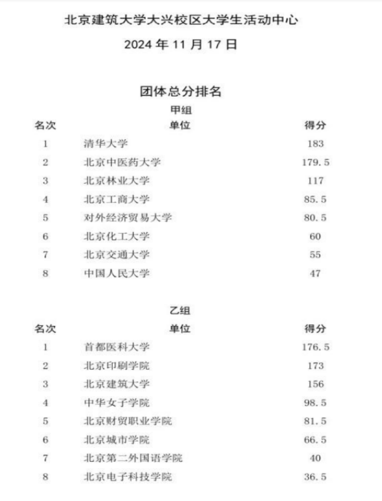11月17日,首都高等學(xué)校第二十四屆傳統(tǒng)養(yǎng)生體育比賽在北京建筑大學(xué)圓滿落幕。這一賽事由北京市大學(xué)生體育協(xié)會主辦、北京市大學(xué)生體育協(xié)會傳統(tǒng)保健體育分會執(zhí)行、北京建筑大學(xué)承辦,共有來自37所高校、近四百名運(yùn)動員參賽。在此次比賽中,由李君華老師帶領(lǐng)的中華女子學(xué)院武術(shù)隊(duì)共獲得兩項(xiàng)冠軍,四項(xiàng)亞軍、兩項(xiàng)季軍,并獲得乙組團(tuán)體總分第四名。
