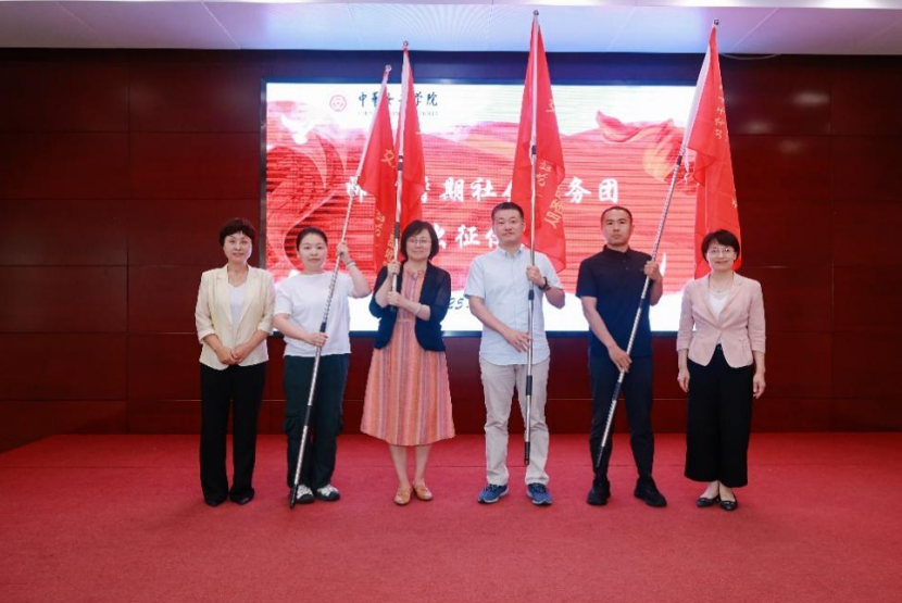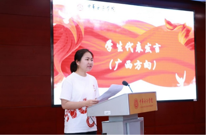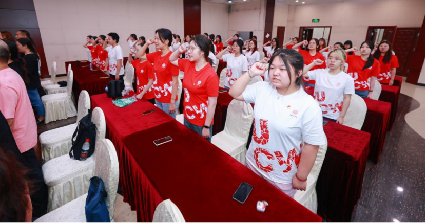 實踐團全體學生在校旗前莊嚴宣誓:將以實際行動服務(wù)婦女兒童事業(yè)和鄉(xiāng)村振興;用腳步丈量祖國山河,用心靈傾聽人民心聲,用智慧感應(yīng)時代脈搏;將青春華章鐫刻在祖國的廣闊天地,展現(xiàn)女院人的獨特風采與巾幗擔當。