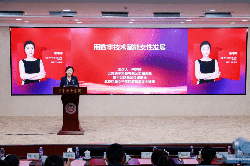 宋婷婷理事結(jié)合個人成長與企業(yè)實踐,以“用數(shù)字技術(shù)賦能女性發(fā)展”為題,介紹了快手在多領(lǐng)域的公益實踐,闡述了數(shù)字平臺為女性發(fā)展帶來的機遇,鼓勵青年女性珍惜時代機遇,積極融入數(shù)字浪潮。