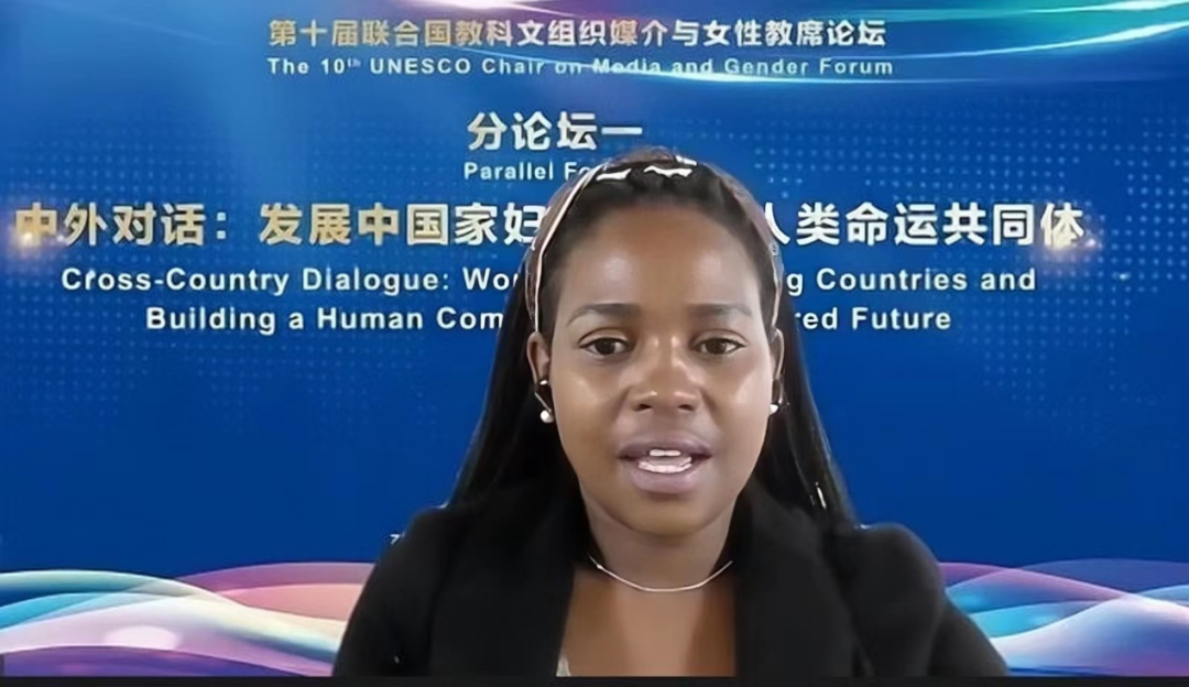 來自坦桑尼亞社區(qū)、性別、婦女和特殊群體部的社會福利官員弗洛拉·馬丁·蘇馬里作了題為《發(fā)展中國家女性如何參與構(gòu)建人類命運(yùn)共同體》的發(fā)言。發(fā)言中重點(diǎn)提到了媒體對婦女發(fā)展所起到的重要作用,包括讓女性的聲音被聽見、讓公眾認(rèn)識到女性歧視和其它一些問題,以及媒體在解決婦女問題方面應(yīng)有的責(zé)任。