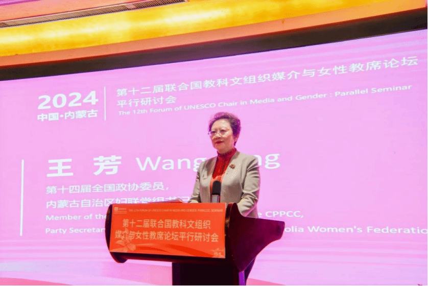 中華女子學院(全國婦聯干部培訓學院)院長、聯合國教科文組織媒介與女性教席主持人劉利群在致辭中指出,內蒙古自治區婦聯與中華女子學院有多年友好合作關系,在全國婦聯和內蒙古自治區大力支持下,學院于2023年在內蒙古設立了“中華女子學院(全國婦聯干部培訓學院)內蒙古培訓基地”和“實踐基地”,開啟了戰略合作新篇章。她指出,本次研討會是在數字技術方興未艾、正成為改變世界競爭格局的重要力量的背景下召開,以數字賦能與婦女發展為本次會議主題,凸顯了中華女子學院與內蒙古自治區婦聯關注數字時代婦女發展、關注技術和研究前沿領域的敏銳觀察與責任擔當,相信此次研討會定能產生豐富的學術成果與實踐成果。