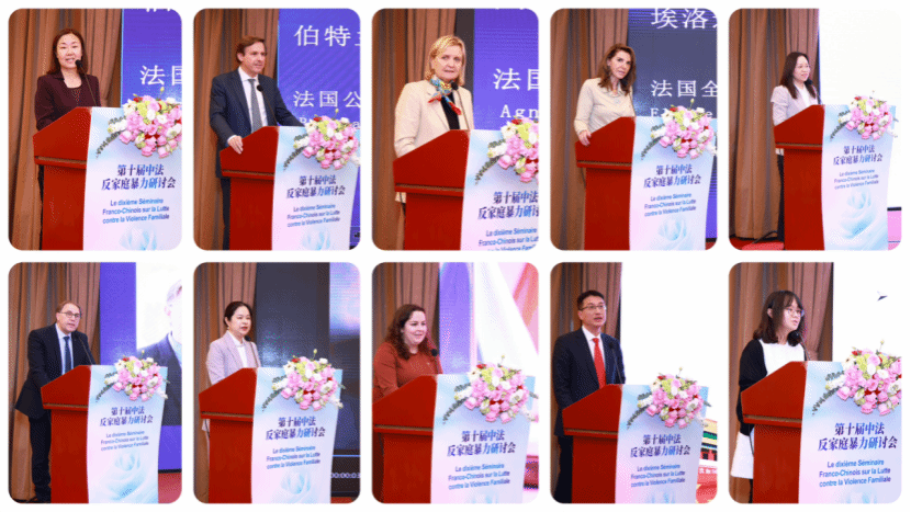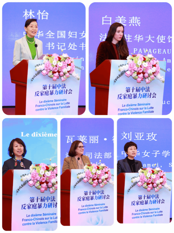 【開幕式由全國婦聯聯絡部部長張建岷主持,中華全國婦女聯合會副主席、書記處書記林怡、法國駐華大使館公使白美燕、法國司法部民事事務與掌璽司司長瓦萊麗·德爾諾、中華女子學院黨委書記劉亞玫分別致辭】