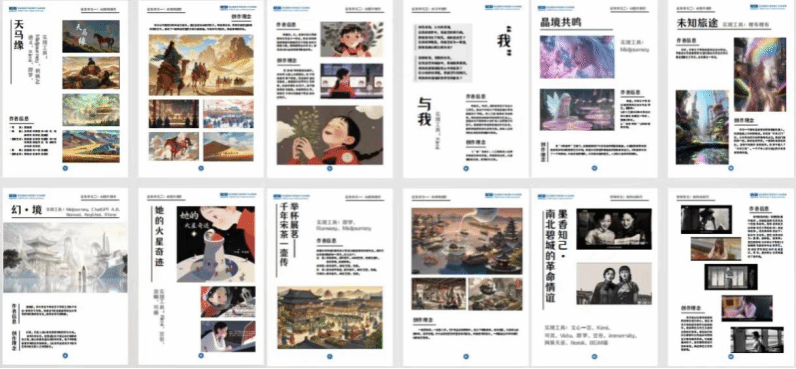 來自中國傳媒大學的施媛媛團隊分享了原創AI敘事影像作品《天馬緣》及其背后的創作方式與理念。團隊結合多種創作工具,整合人工與AI創作資源,呈現出了一幅古今交映的唯美畫卷,重現了絲綢之路的繁榮景象。青年古箏演奏家鄭安娜,通過她的AI作品《Unitea》,探討了AI技術與傳統箏文化的融合,強調了AI在音樂創作和演奏中的新機遇,展望了AI技術在音樂藝術發展和文化傳承中的潛力,并呼吁共同擁抱AI與傳承文化的結合,共創美好藝術世界。北京服裝學院的潘瑞欣展出了她的作品《幻·鏡》,該作品以《紅樓夢》中的“太虛幻境”為靈感,結合虛擬現實技術,探索現實與虛幻的界限。中華女子學院的鄭景文呈現了她的作品《“我”與我》,通過AI文學創作模塊探討了人工智能的自我意識與人類情感的交織。北京科技大學機械工程學院本科生牟嘉霖的作品《她的火星奇跡》,利用AI技術輔助圖片創作,講述了一位女性在火星上的冒險故事,體現了女性在科學探索領域的重要作用和無限潛力。作品通過圖文結合的方式,將觀眾帶入一個科幻與現實交織的世界,探討了人類對未知宇宙的好奇心和探索精神。