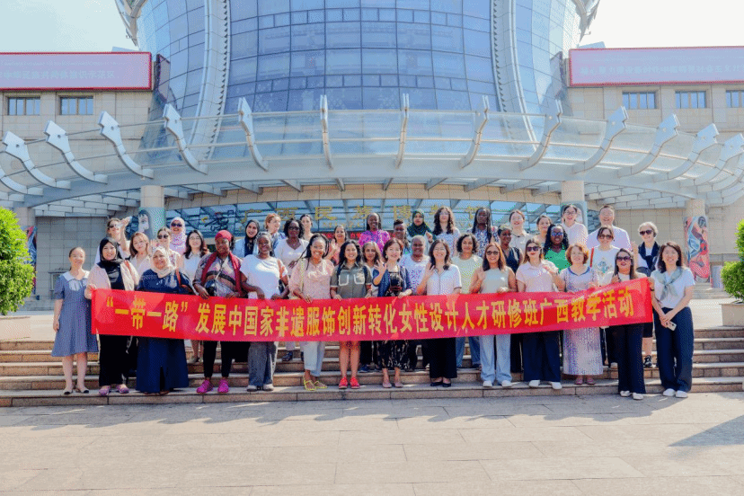 研修班課程體系緊扣“非遺+女性+創意”主線,分為宏觀認知、能力建設和案例交流三大模塊,系統設置《非遺文化可持續生態理念》《中華服飾的時尚創新與國際傳播》等課程,幫助學員拓展國際視野,提升專業能力。在實踐環節中,學員們赴北京及廣西桂林、陽朔、南寧等地,走進非遺文化體驗館、桂花公社、雞窩渡村和廣西民族博物館,深度體驗中國非遺傳承與創新的生動實踐,切實感受非遺與女性賦能的緊密結合。