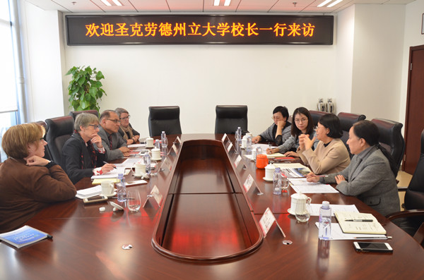 10月30日,美國圣克勞德州立大學校長羅賓﹒維克(Robbyn Wavker),助理副校長沙赫扎德﹒阿哈默德(Shahzad Ahmad),孔子學院院長凱西﹒約翰遜(Kathy Johnson),社區心理、咨詢及家庭治療系艾米﹒克諾夫(Amy Kno...