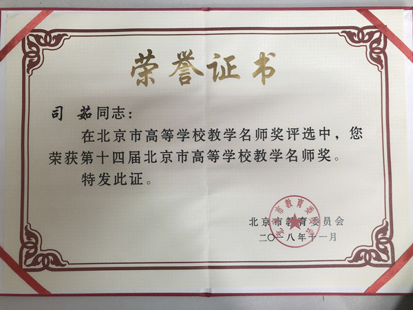 根據(jù)北京市教委《關(guān)于開展第十四屆北京市高等學(xué)校教學(xué)名師獎(jiǎng)暨第二屆北京市高等學(xué)校青年教學(xué)名師獎(jiǎng)評選工作的通知》(京教函〔2018〕273號(hào)),經(jīng)我校推薦和北京市教委評審,我校司茹教授獲第十四屆北京市高等學(xué)校教學(xué)...
