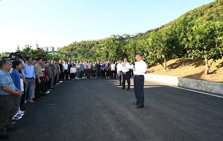 ??離開時,習近平同村民們親切道別。他叮囑,黨和政府要繼續加強對老區的政策扶持,老區廣大干部群眾要齊心協力、奮發圖強。他祝愿鄉親們的日子過得像金柚一樣又甜又美。