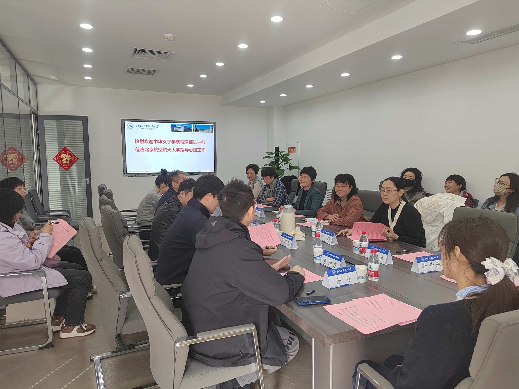 為深化心理育人工作實效,學習兄弟院校先進經驗,3月21日上午,我校學生工作隊伍調研團隊前往北京航空航天大學積極心理體驗中心開展專題調研,調研團隊由學生工作部、各二級學院黨總支書記、輔導員等14人組成。北航積極心理體驗中心主任馬喜亭、副主任李衛華及輔導員代表參加座談。