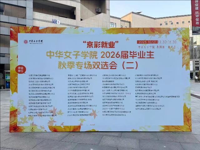 10月21日,“京彩就業(yè)”中華女子學(xué)院 2026 屆畢業(yè)生秋季專場(chǎng)雙選會(huì)(二)在教圖樓一樓大廳成功舉辦。本次雙選會(huì)以搭建校園與職場(chǎng)的“直通橋梁”為核心目標(biāo),旨在幫助 2026 屆畢業(yè)生高效對(duì)接優(yōu)質(zhì)就業(yè)資源、降低求職成本,進(jìn)一步提升學(xué)生職業(yè)認(rèn)知水平與綜合競(jìng)爭(zhēng)力,為其順利開啟職業(yè)生涯奠定基礎(chǔ)。