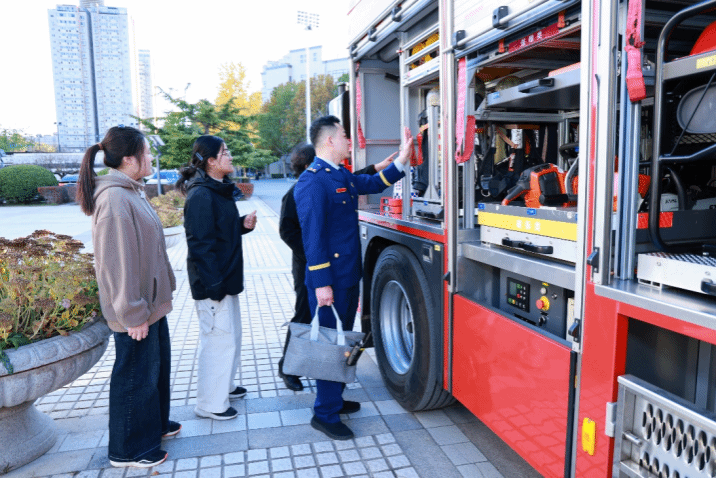 講座結(jié)束后,同學(xué)們近距離參觀了消防車,王奇峰副站長耐心細(xì)致地一一解答同學(xué)們的問題。