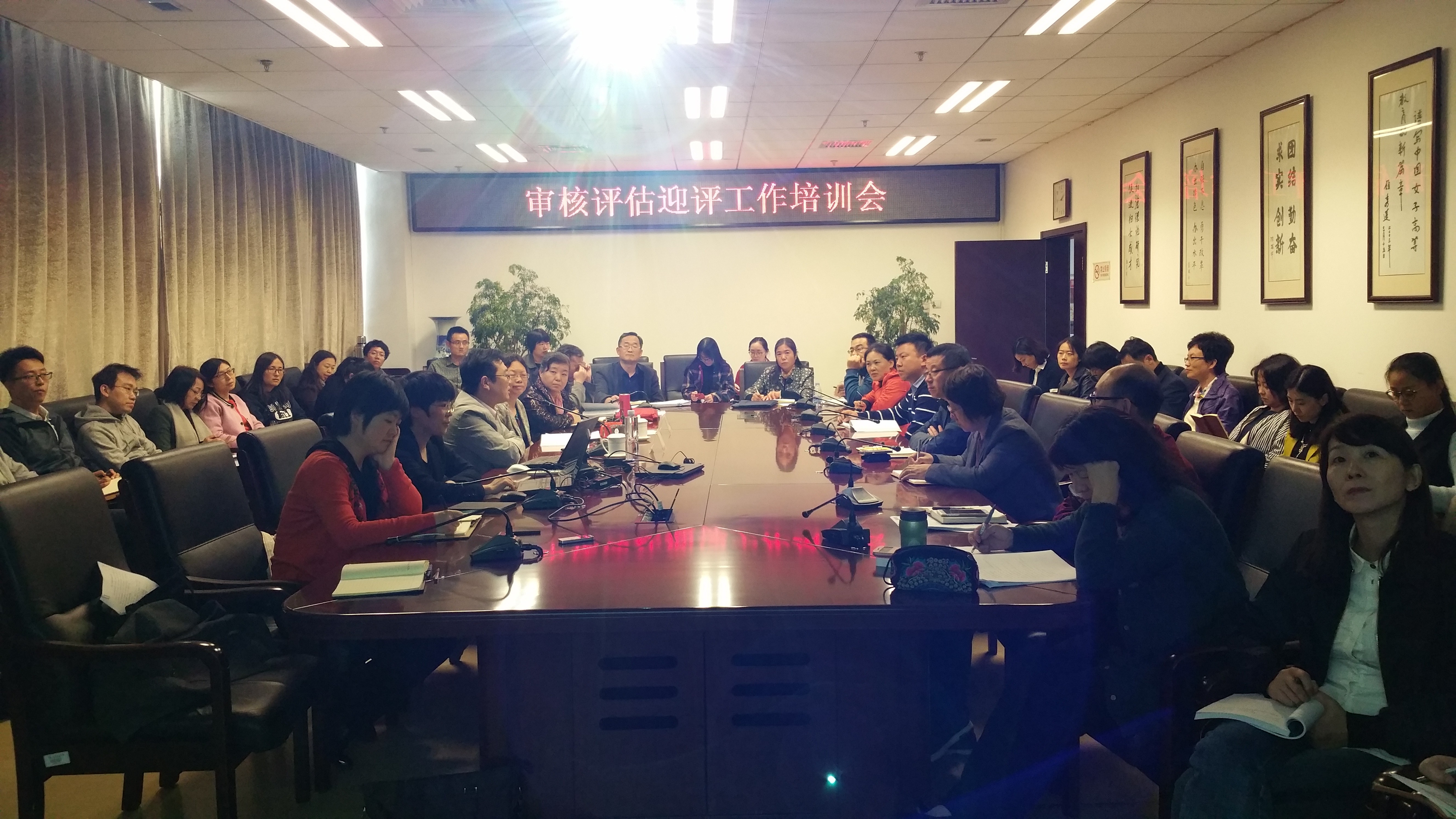胡元林簡(jiǎn)要介紹了審核評(píng)估的內(nèi)涵,重點(diǎn)從專家進(jìn)校進(jìn)校流程、考察形式和內(nèi)容、案頭材料、支撐材料、聯(lián)絡(luò)工作、校園環(huán)境、教學(xué)狀態(tài)、考察安排、會(huì)務(wù)安排、專家接待以及專家離校后工作等方面,講述了工作要求和注意事項(xiàng),并與大家分享了幾點(diǎn)工作感悟:細(xì)節(jié)決定成敗;態(tài)度決定高度;用心就能順心;團(tuán)結(jié)就是力量;評(píng)估服務(wù)發(fā)展。