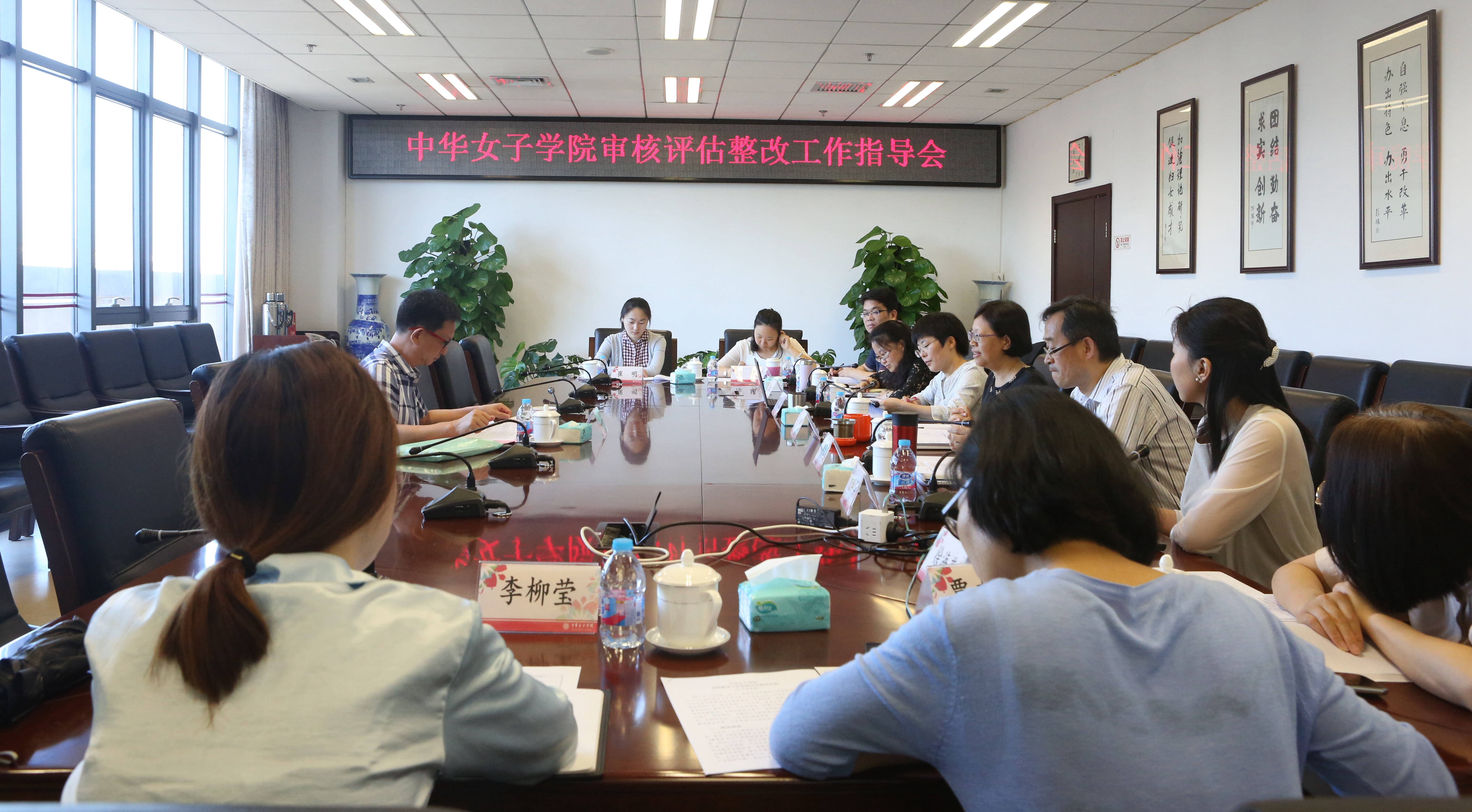 在審核評估整改工作指導會上,教務處和質量監控處全體人員圍繞專家反饋意見中提到的問題,就如何凝練中華女子學院應用型人才內涵、學科專業建設、人才培養體系、通識課程、輔修專業和雙學位、專業認證、質量監測指標體系、督導工作、學生評教、教師發展中心、本科專業類教學質量國家標準等問題進行了細致地探討交流。沈校長對上述問題予以一一回應指導,介紹了華南師范大學在本科教學工作和人才培養改革中“16+N”(N為實踐學時)課程體系、“零學分小時制”非正式課程等好的做法和經驗。