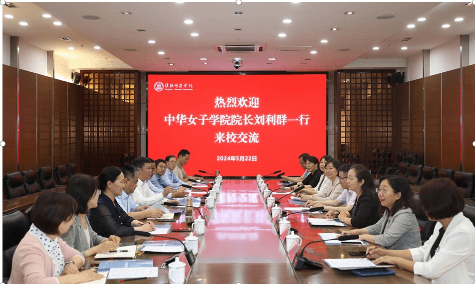 5月22日,調研組前往淮陰師范學院調研。淮陰師范學院校長趙宜江、副校長毛廣雄,黨辦、校辦、教務處、國際合作與交流處、財務處、商學院、歷史文化旅游學院負責人參加座談。趙宜江介紹了淮師的基本情況,重點介紹了學校專業認證等外部評估開展情況。他希望雙方充分發揮各自優勢,共同提升學校事業高質量發展水平。劉利群介紹了中華女子學院的基本情況和辦學特色。她期待兩校能夠持續交流互鑒,共同推動發展進步。毛廣雄以《堅持六個突出,抓好六個關鍵》為題,系統介紹了淮師本科教育教學審核評估評建工作經驗。